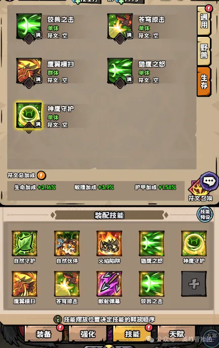 本次猎人职业的天赋同样迎来完善,新增生存天赋。