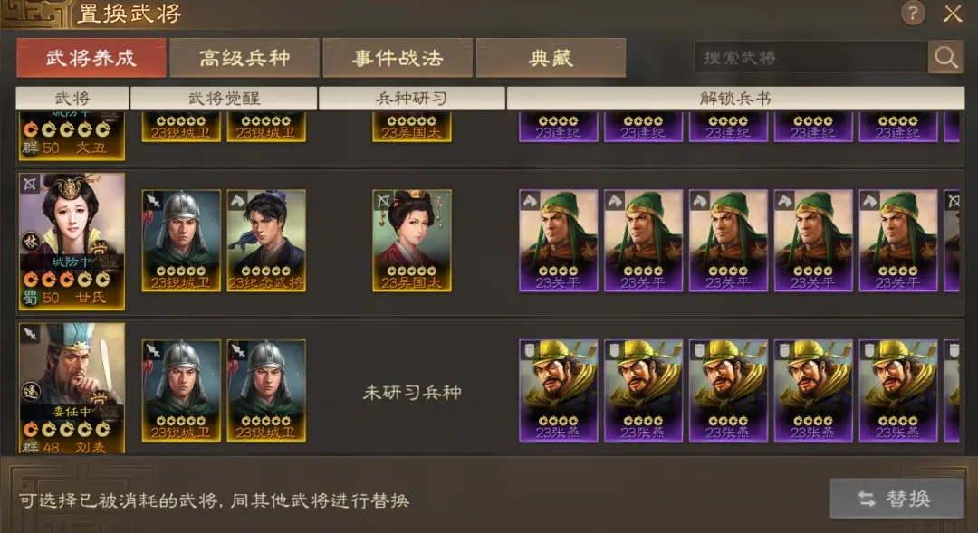 由于新赛季战法经验是重置的,所以就需要攒满红三星卡或者四星卡来作为饲料。