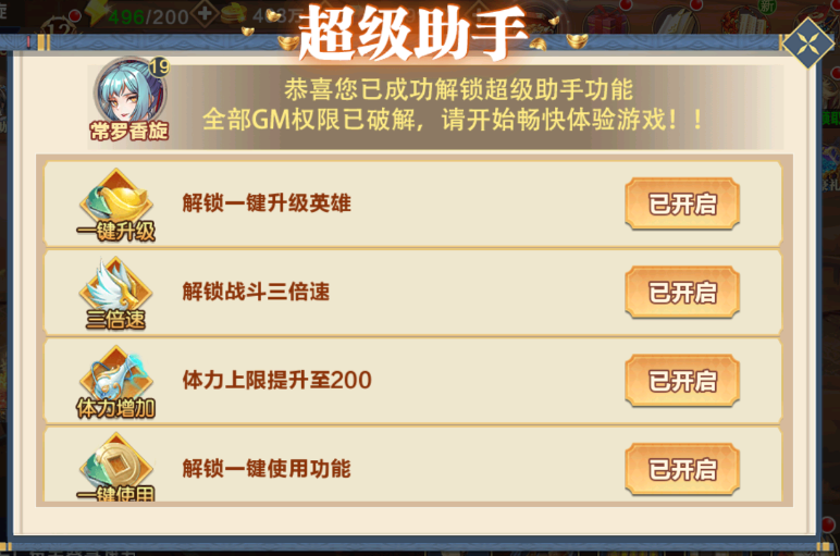 超级助手解锁后激活自动闯关功能,倍速战斗,自动释放技能,真正实现塔防卡牌游戏一键自动,释放双手。