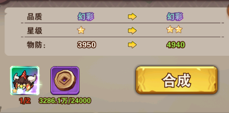 ⑵合成:相同的品质星级,2件就能合成1件高品阶的;装备可在家园系统打造里面炼器与合成;高品质装备也能通过活动购买获得。