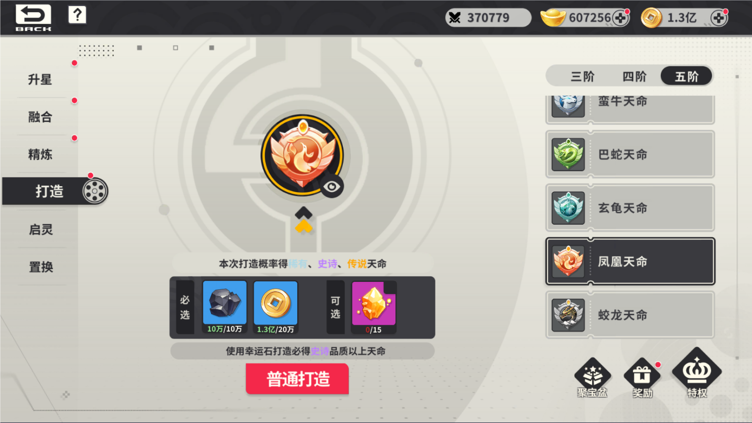 玩家可以通过打造材料获得对应天命,同时可以装备天命来提升数值。天命采用换代形式,不同等级装备的天命阶数是不一样的。同时天命可以进行强化和突破,提升天命属性。