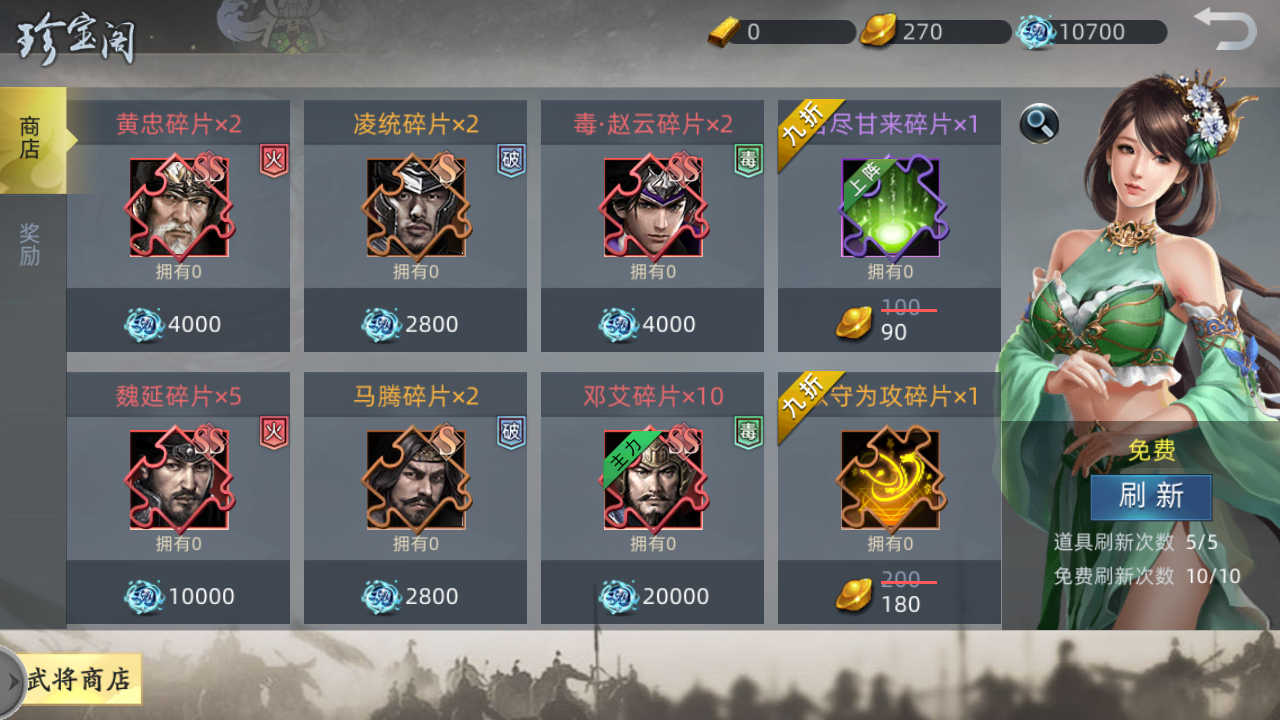2、珍宝阁中武将商店一定要刷新要兑换,优先买主力武将,其次缘分武将。