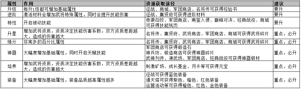 可以通过以下途径提升公共属性,即全体武将属性获得提升,小编分别列出对应系统及资源产出途径仅供参考: