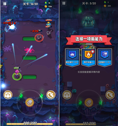每通过一定的关卡数后,便会获得空投奖励,选择强化本次闯关的能力,合理选择需要的能力,可以帮助玩家通过更多的关卡。